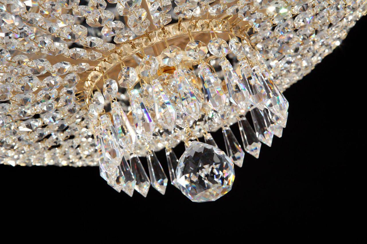 Особенности модели DIA750-PT50-WG: Характерной чертой серии является необычная белая патина, которая нанесена на рельефные детали. Благодаря этому решению конструкция смотрится свежо и ненавязчиво. Кристаллы разного размера и огранки формируют силуэты светильников. Каркас изготовлен из металла с гальваническим покрытием золотого цвета. Предоставляется дополнительный год гарантии.
