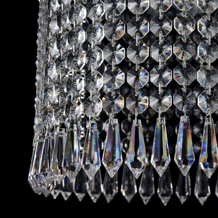 Каркас из металла. Латунная лента. Подвески из *хрусталя с огранкой в виде кристалла. Комментарий