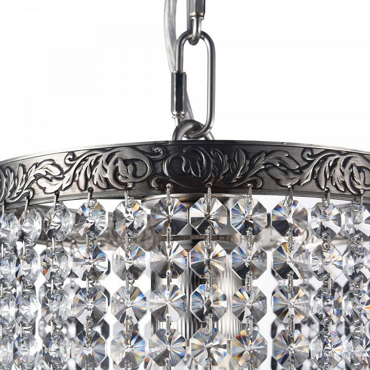 Каркас из металла. Латунная лента. Подвески из *хрусталя с огранкой в виде кристалла. Комментарий