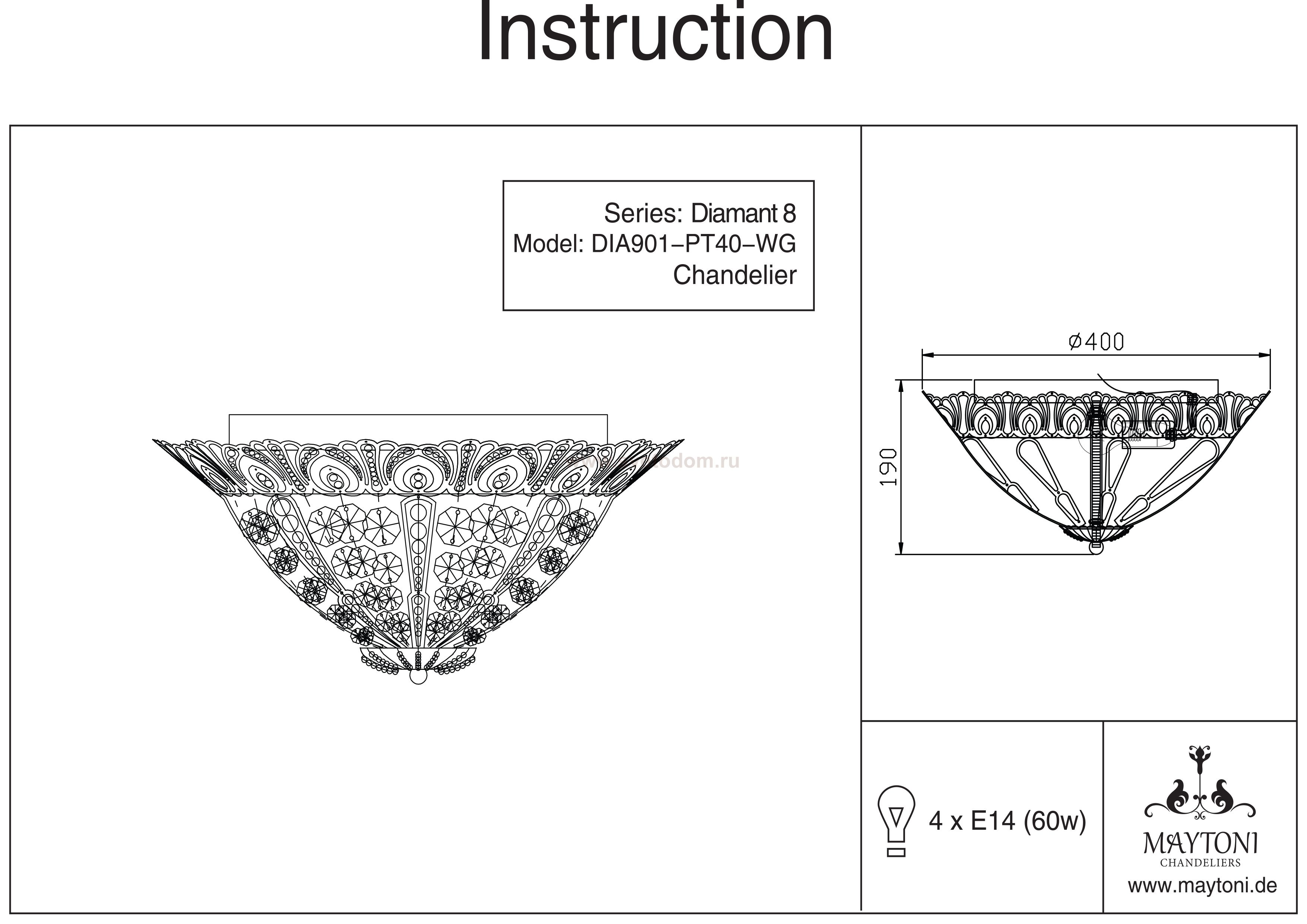 100 Отзывы Люстра Maytoni DIA901-PT40-WG DiamantПока нет отзывов об этом товаре, напишите и он обязательно появится после модерации! Оставить свой отзывПохожие товары Другие товары магазина Фото