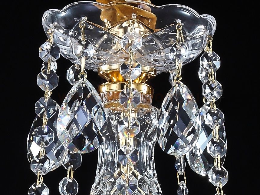 Арматура из металла. Рожки из стекла выполнены гутным способом. Розетки из монолитного *хрусталя дополнены индивидуальным узором. Комментарий