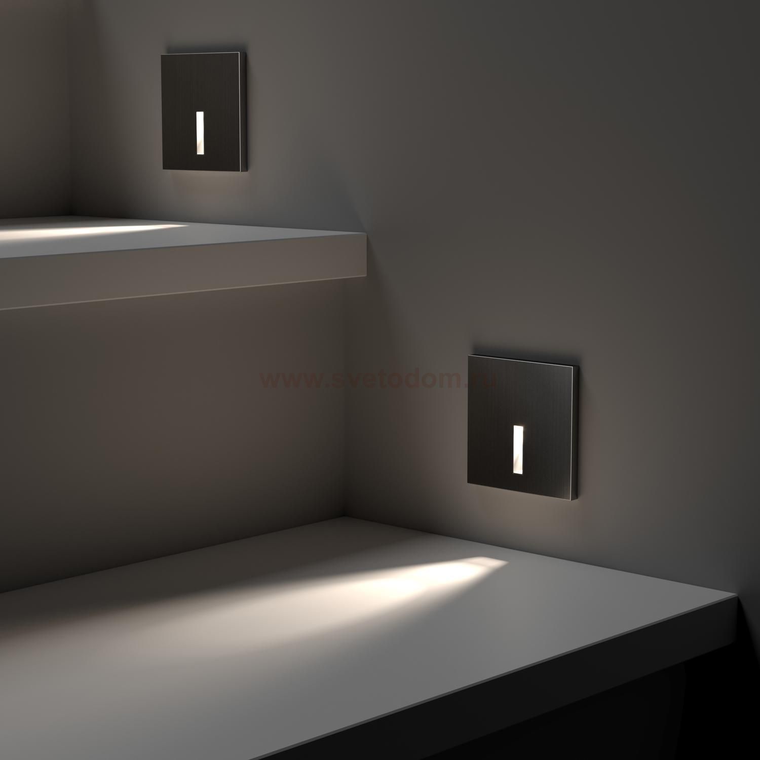 Серия встраиваемых в стену светильников со встроенным светодиодом. Выполняют роль подсветки ступеней и дежурного освещения коридоров. Применяются для внутреннего освещения. Монтажная коробка в комплектеВстраиваемый в стену светильник со светодиодом. Выполняет роль подсветки ступеней и дежурного освещения коридоров. Монтажная коробка поставляется в комплекте. За счет узкого светового окна обладает сфокусированным лучом света, падающим непосредственно на ступень.