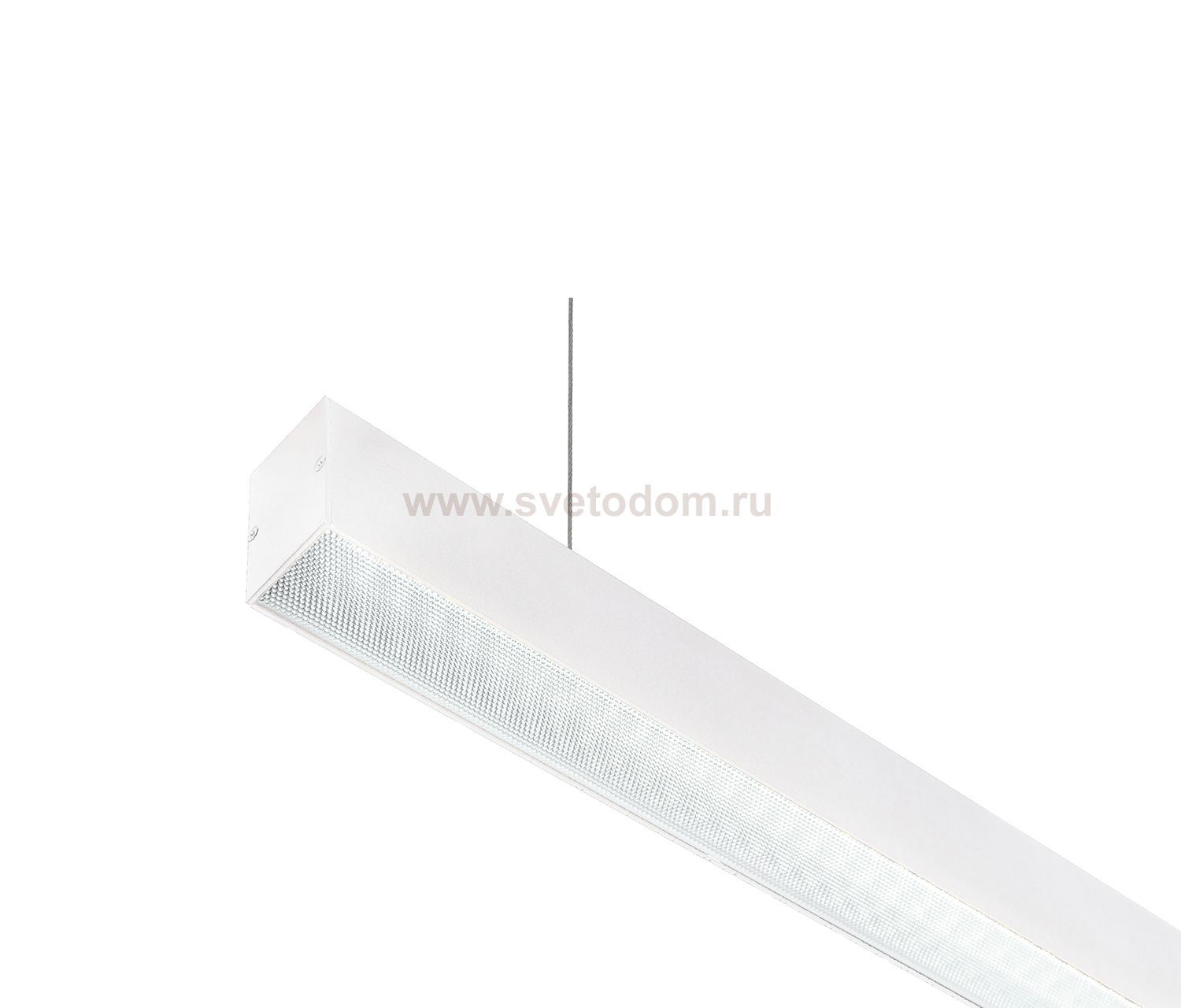 Серия линейных светильников с рассеивателем из призматического поликарбоната с великолепными светопропускными показателями. При этом призматический рассеиватель скрывает диодную линейку так же хорошо, как и классический рассеиватель. Все модели серии имеют универсальный комплект креплений и могут быть установлены как подвесным, так и накладным способом. Благодаря крепежными элементам не требуется сверление корпуса. Данные модели предназначены для установки в помещениях с высокими и средней высоты потолками. Легко и незаметно вписываются в любой дизайн. Идеально подходят для офисов, торговых помещений и общественных зон. Ассортимент серии включает в себя большое количество вариантов длин от 1250 до 3000 мм.Подвесы в комплекте (2 штуки).