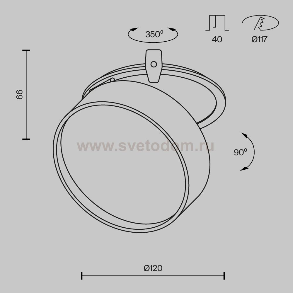 Данный размер указывает какое отверстие необходимо сделать для правильного монтажа. Зачастую светильники выбирают после ремонта и сделанных монтажных отверстий, тогда подбор осуществляется строго в размер +/- 2-5мм.