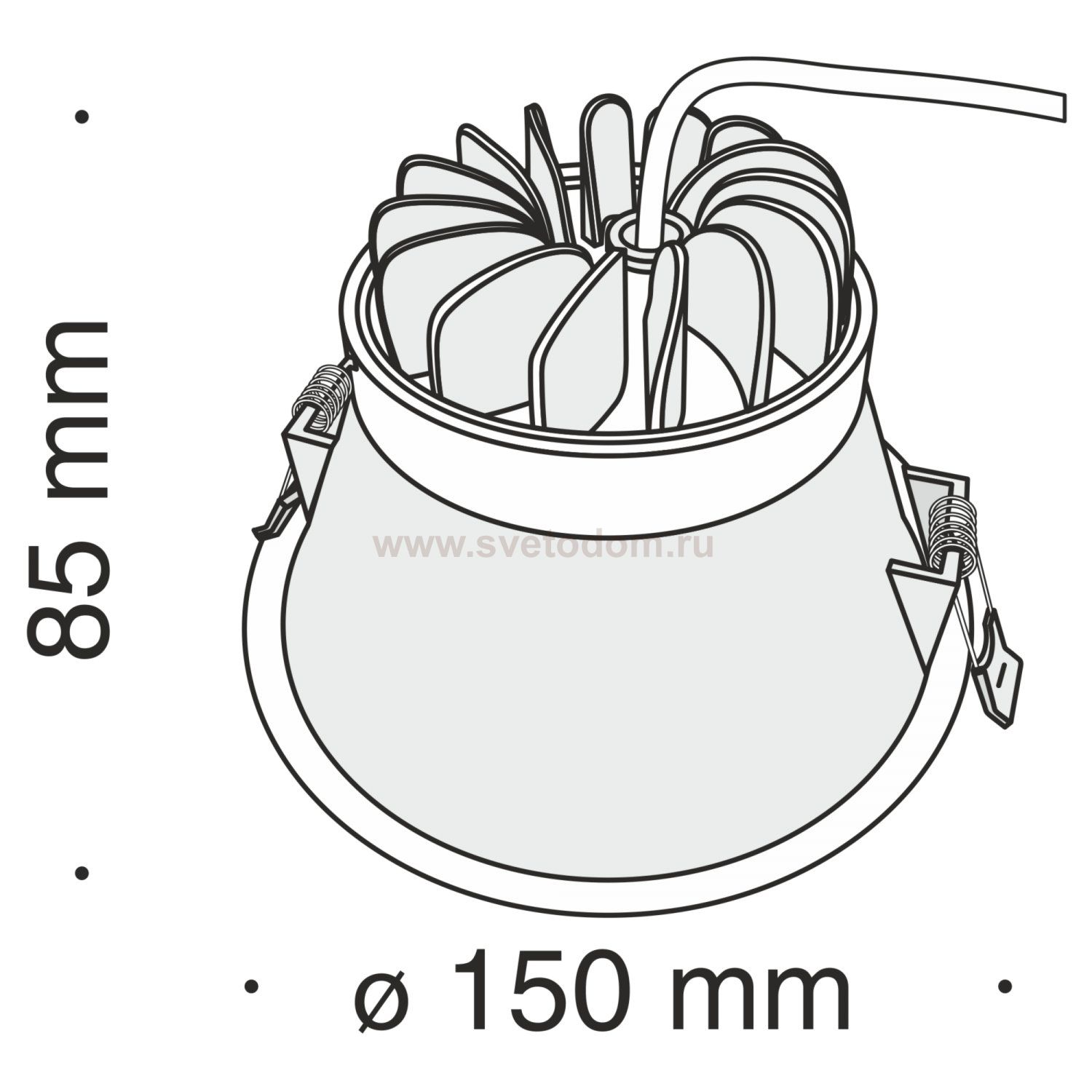 Данный размер указывает какое отверстие необходимо сделать для правильного монтажа. Зачастую светильники выбирают после ремонта и сделанных монтажных отверстий, тогда подбор осуществляется строго в размер +/- 2-5мм.