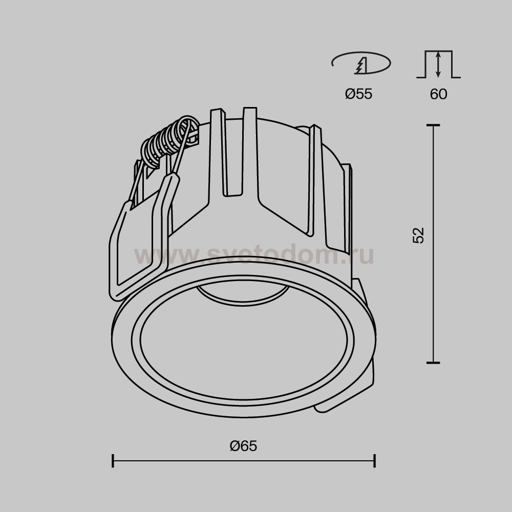 Данный размер указывает какое отверстие необходимо сделать для правильного монтажа. Зачастую светильники выбирают после ремонта и сделанных монтажных отверстий, тогда подбор осуществляется строго в размер +/- 2-5мм.