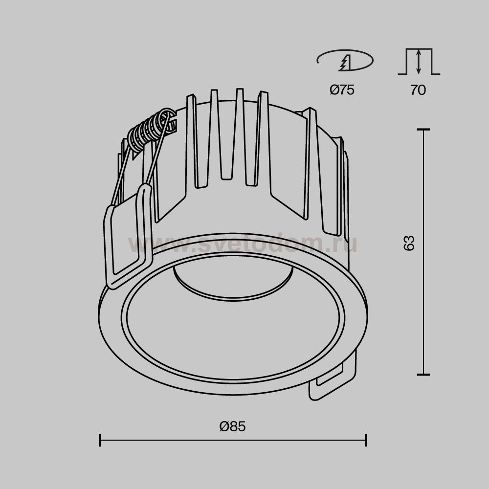 Данный размер указывает какое отверстие необходимо сделать для правильного монтажа. Зачастую светильники выбирают после ремонта и сделанных монтажных отверстий, тогда подбор осуществляется строго в размер +/- 2-5мм.