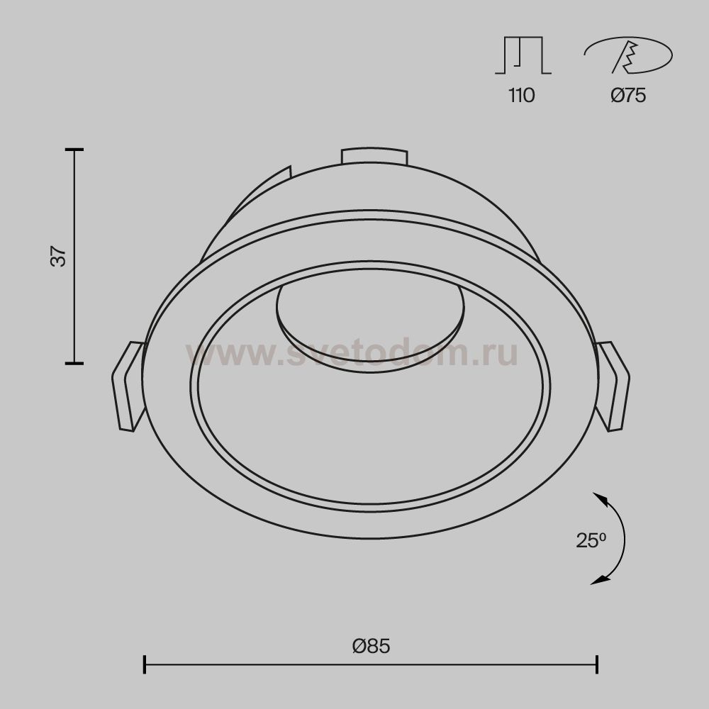Материал корпуса - алюминий, цвет - графит. Белый рассеиватель из акрила. Источник света - лампа с цоколем GU10, цветовая температура - 3000К. Степень защиты - IP54. Совместимы с лампами 2424, 2426, 8458, 7061 из ассортимента.