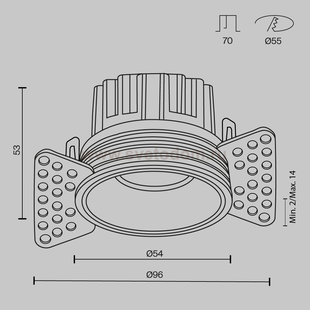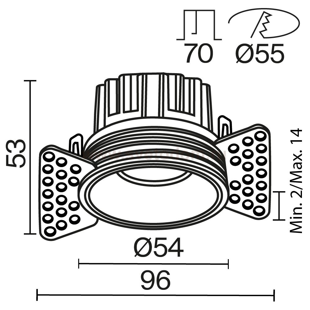 Данный размер указывает какое отверстие необходимо сделать для правильного монтажа. Зачастую светильники выбирают после ремонта и сделанных монтажных отверстий, тогда подбор осуществляется строго в размер +/- 2-5мм.