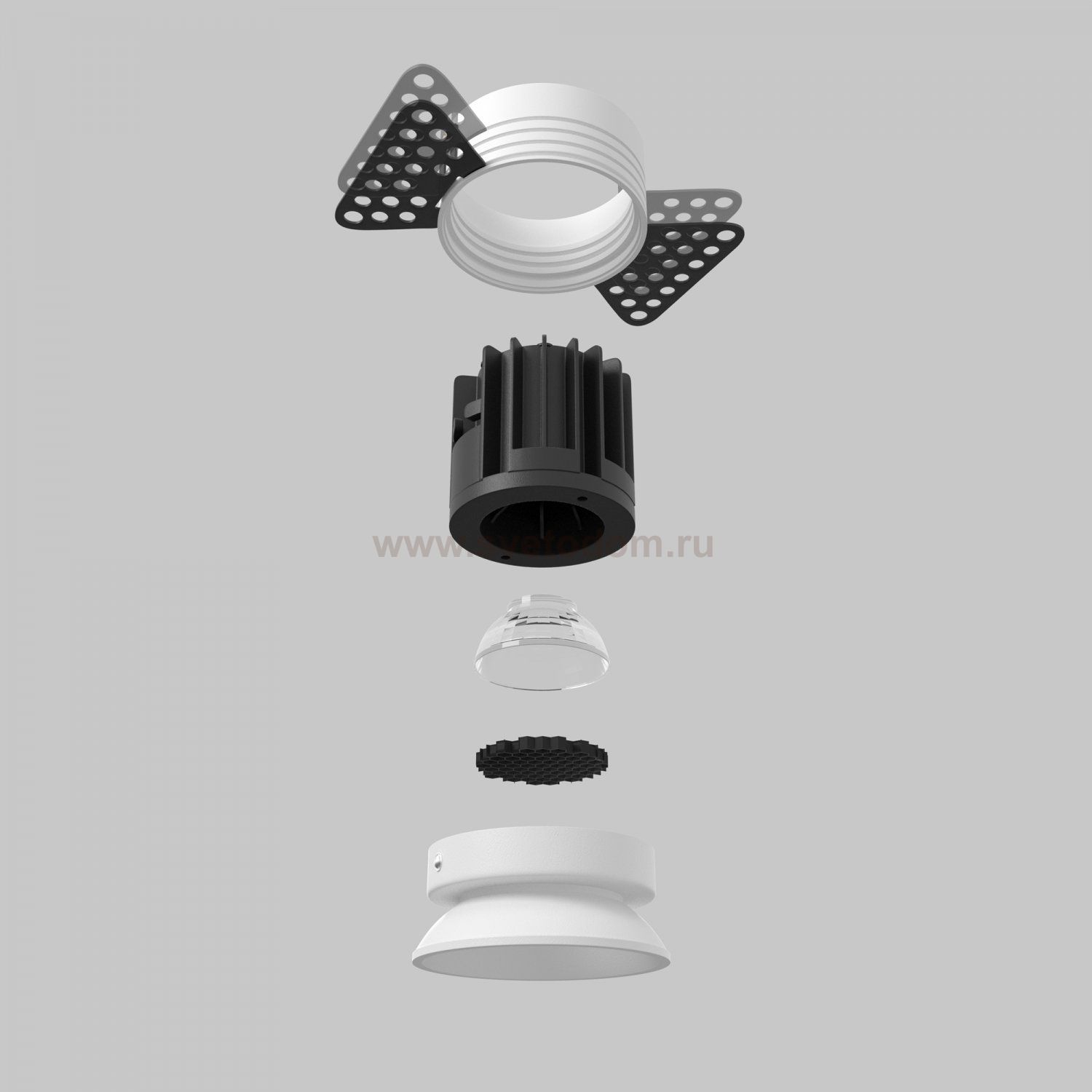 Материал корпуса – металл; цвет – белый, чёрный и латунь. Два варианта корпуса: встраиваемые светильники с узкой рамкой и встраиваемые светильники без видимой рамки, предназначенные для безрамочного монтажа под шпаклёвку. Широкий угол рассеивания 60°. Утопленный LED-источник света мощностью 7 или 12Вт. Высокий коэффициент цветопередачи. Цветовая температура 3000К или 4000К. Наличие биодинамических моделей и дополнительных антибликовых фильтров.