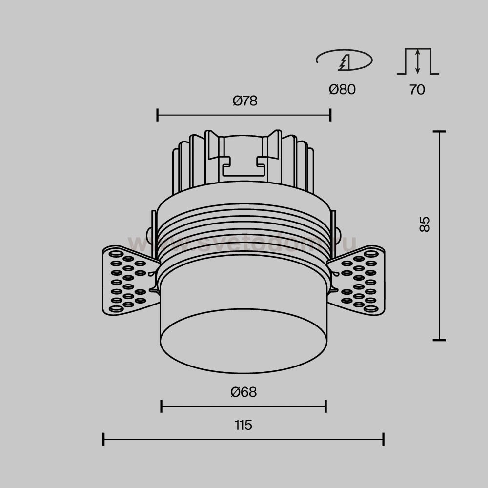 Данный размер указывает какое отверстие необходимо сделать для правильного монтажа. Зачастую светильники выбирают после ремонта и сделанных монтажных отверстий, тогда подбор осуществляется строго в размер +/- 2-5мм.
