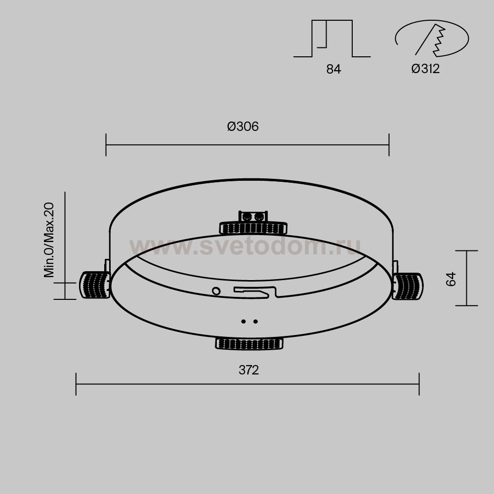 Данный размер указывает какое отверстие необходимо сделать для правильного монтажа. Зачастую светильники выбирают после ремонта и сделанных монтажных отверстий, тогда подбор осуществляется строго в размер +/- 2-5мм.