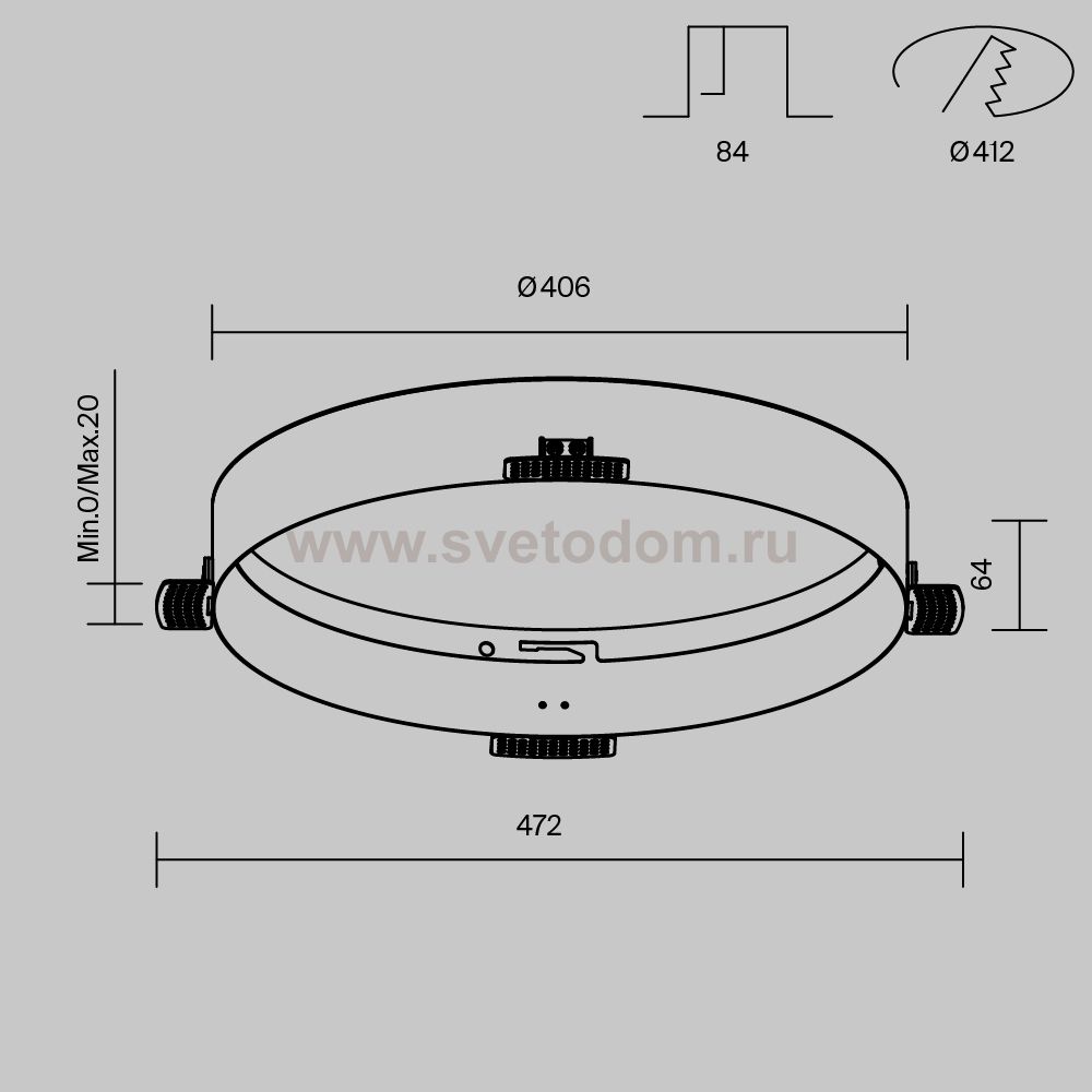 Данный размер указывает какое отверстие необходимо сделать для правильного монтажа. Зачастую светильники выбирают после ремонта и сделанных монтажных отверстий, тогда подбор осуществляется строго в размер +/- 2-5мм.