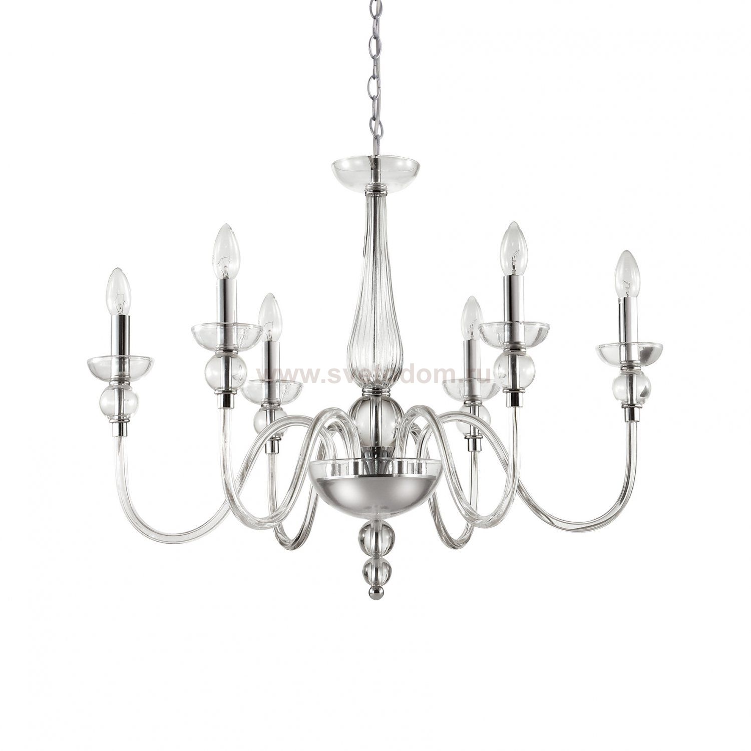 Люстра от известной итальянской фабрики Ideal lux из каталога Classico в современном стиле под артикулом DOGE SP6 TRASPARENTE (44422) серии DOGE имеет ряд отличительных характеристик: Люстра из прозрачного или белого дутого стекла ручной работы. Арматура и детали из хромированного металла.