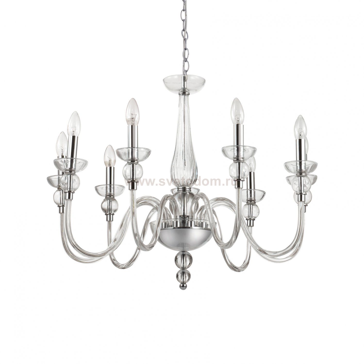 Люстра от известной итальянской фабрики Ideal lux из каталога Classico в современном стиле под артикулом DOGE SP9 TRASPARENTE (44453) серии DOGE имеет ряд отличительных характеристик: Люстра из прозрачного или белого дутого стекла ручной работы. Арматура и детали из хромированного металла.