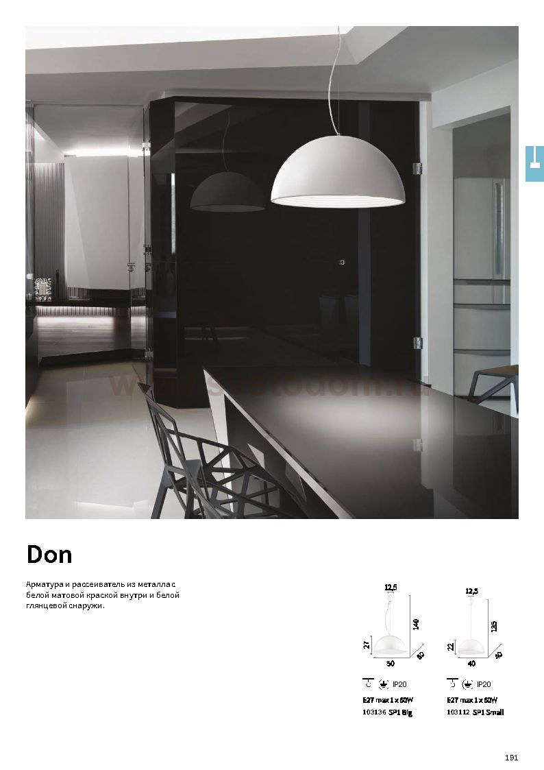 Подвесной светильник – это универсальный вариант, подходящий для любой комнаты. Сегодня производители предлагают огромный выбор таких моделей по самым разным ценам. В каталоге интернет-магазина «Светодом» мы собрали большое количество интересных и оригинальных светильников по выгодной стоимости. Вы можете приобрести их в Москве, Екатеринбурге и любом другом городе России. Подвесной светильник Ideal lux DON SP1 SMALL сразу же привлечет внимание Ваших гостей благодаря стильному исполнению. Благородный дизайн позволит использовать эту модель практически в любом интерьере. Она обеспечит достаточно света и при этом легко монтируется. Чтобы купить подвесной светильник Ideal lux DON SP1 SMALL, воспользуйтесь формой на нашем сайте или позвоните менеджерам интернет-магазина.