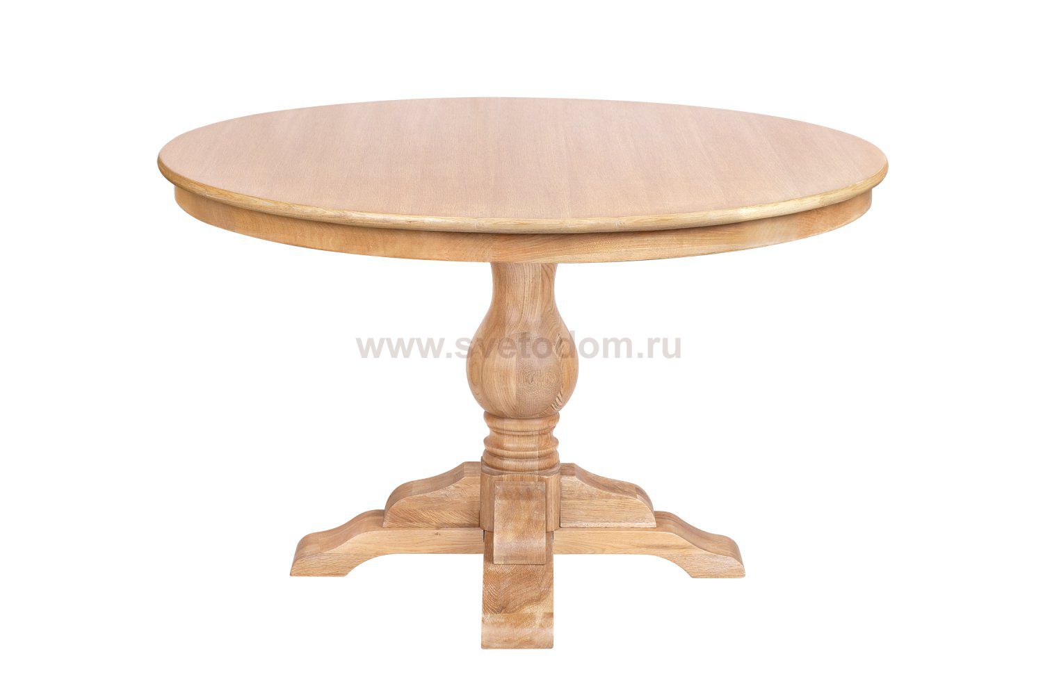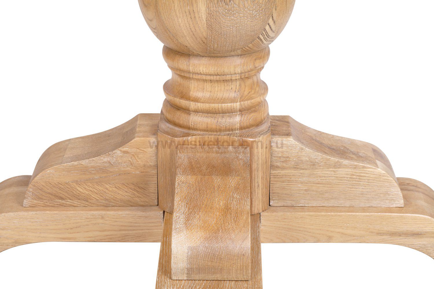 Обеденный стол German со столешницей круглой формы выполнен в винтажном стиле из массива дуба. Массивная резная ножка, исходящая из центра, крепится к устойчивому основанию в виде крестовины. Модель эффектно смотрится и вносит в обстановку элемент роскоши и богатства, подходит для изысканных интерьеров гостиных и гостевых комнат.