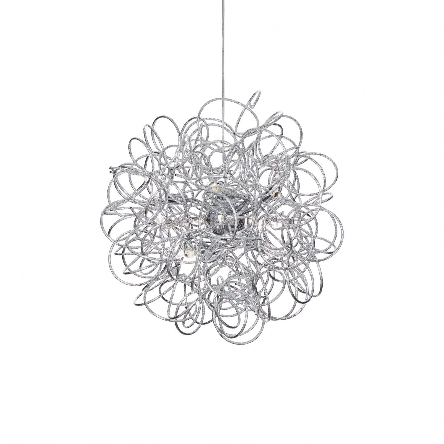Подвесной светильник от известной итальянской фабрики Ideal lux из каталога Moderno в современном стиле под артикулом DUST SP8 (114811) серии DUST имеет ряд отличительных характеристик: Трубчатая арматура из серебристого алюминия ручной работы. Электрический провод регулируемый по длине.