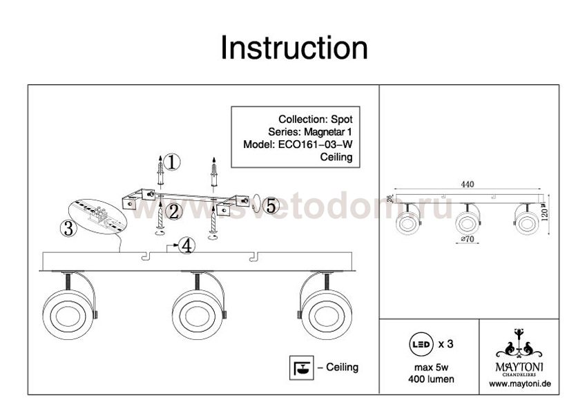 Дизайнеры из Германии пополнили модельный ряд бренда Maytoni прибором Magnetar 1 ECO161-03-W, для изготовления которого использовали металл с белым и черным матовым покрытием. Как видно на фото, светодиодный спот оснащен тремя патронами для LED-ламп |