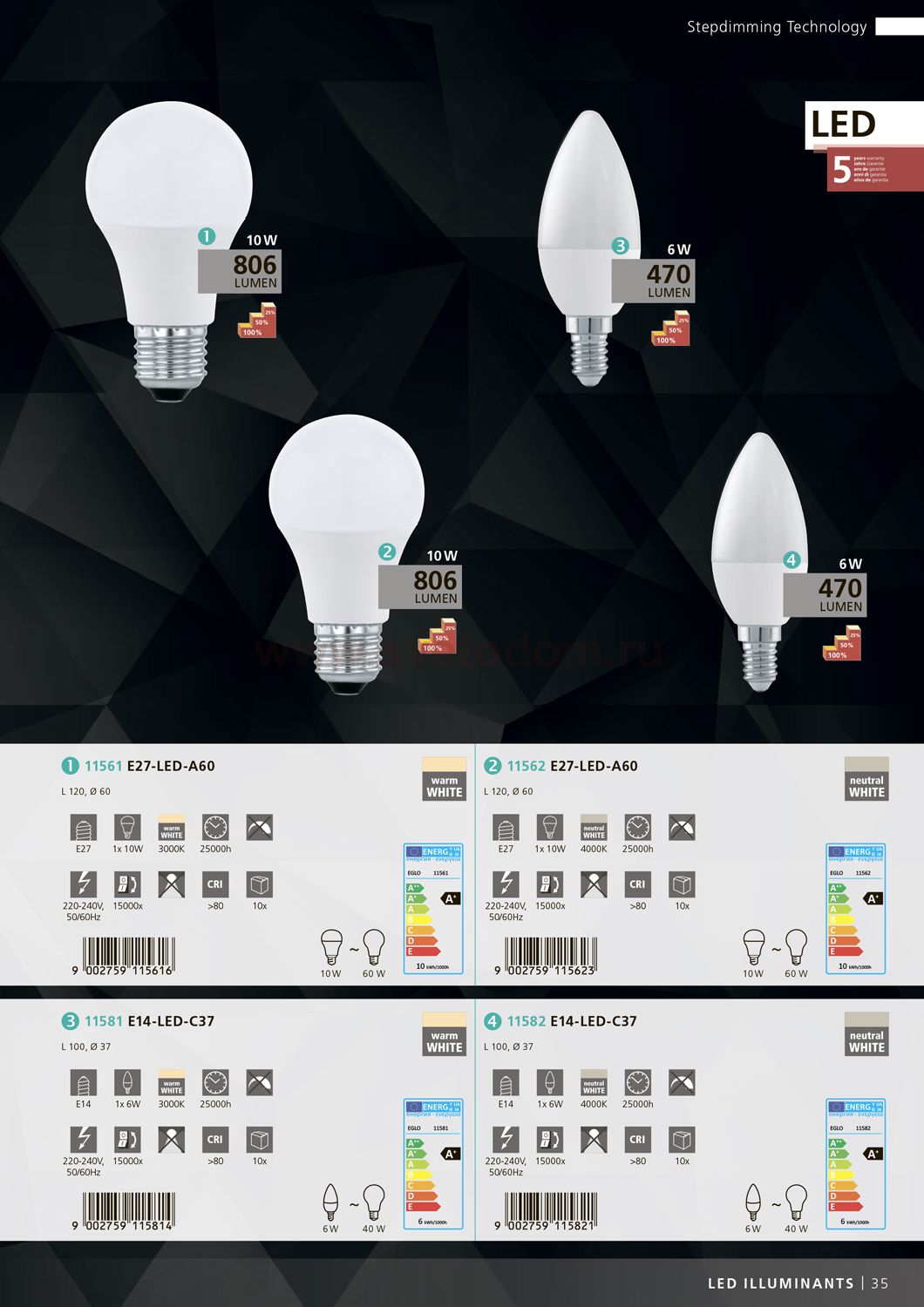 Лампа светодиодная 3 шага диммирования A60 Eglo 11561 является неотъемлемой частью освещения в доме или любом другом помещении, ведь благодаря этой модели мы сможем в полном объеме использовать соответствующий данному цоколю светильник.