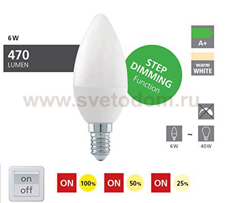 Лампа светодиодная 3 шага диммирования C37 Eglo 11581 является неотъемлемой частью освещения в доме или любом другом помещении, ведь благодаря этой модели мы сможем в полном объеме использовать соответствующий данному цоколю светильник.