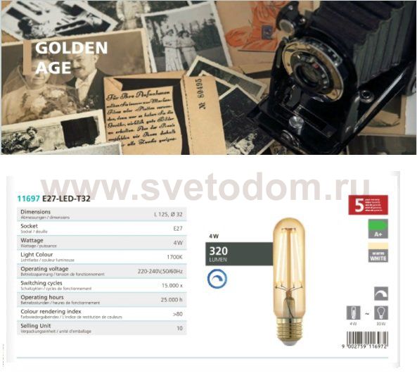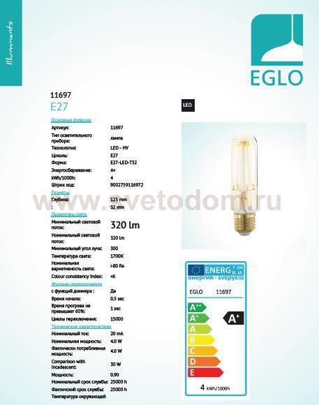 Лампа светодиодная Eglo 11697 является неотъемлемой частью освещения в доме или любом другом помещении, ведь благодаря этой модели мы сможем в полном объеме использовать соответствующий данному цоколю светильник.