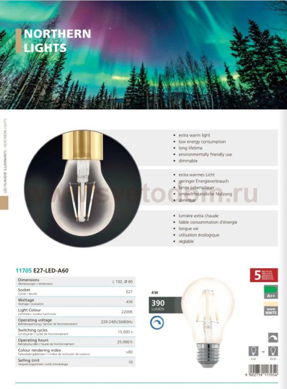 Лампа светодиодная Eglo 11705 является неотъемлемой частью освещения в доме или любом другом помещении, ведь благодаря этой модели мы сможем в полном объеме использовать соответствующий данному цоколю светильник.