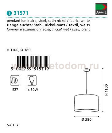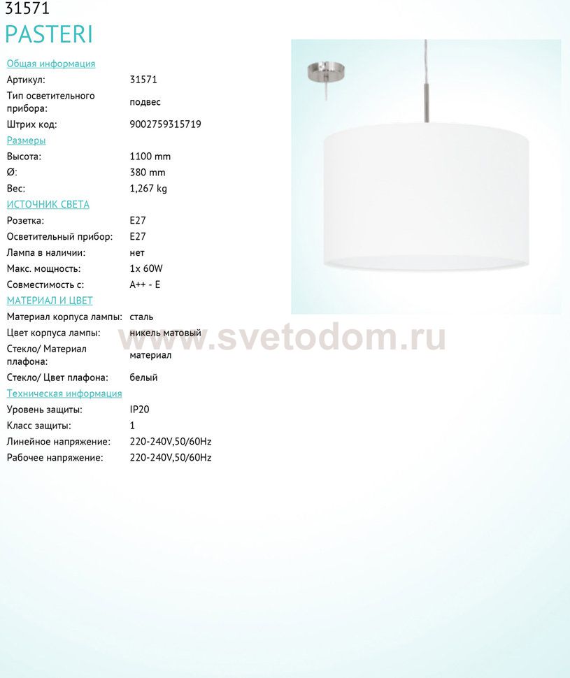Подвесной светильник – это универсальный вариант, подходящий для любой комнаты. Сегодня производители предлагают огромный выбор таких моделей по самым разным ценам. В каталоге интернет-магазина «Светодом» мы собрали большое количество интересных и оригинальных светильников по выгодной стоимости. Вы можете приобрести их в Москве, Екатеринбурге и любом другом городе России. Подвесной светильник Eglo 31571 сразу же привлечет внимание Ваших гостей благодаря стильному исполнению. Благородный дизайн позволит использовать эту модель практически в любом интерьере. Она обеспечит достаточно света и при этом легко монтируется. Чтобы купить подвесной светильник Eglo 31571, воспользуйтесь формой на нашем сайте или позвоните менеджерам интернет-магазина.