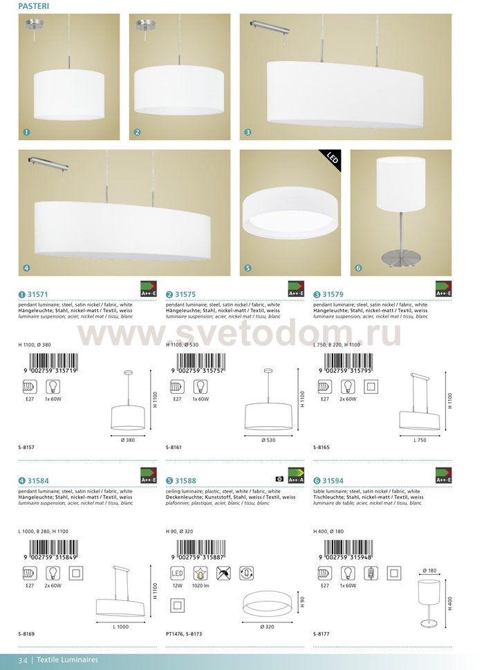 S-8157 Отзывы Текстильный светильник Eglo 31571 PASTERIПока нет отзывов об этом товаре, напишите и он обязательно появится после модерации! Оставить свой отзывПохожие товары Другие товары магазина Фото
