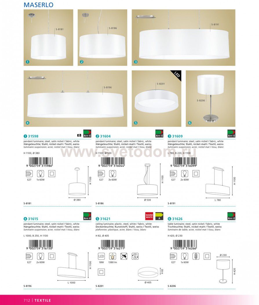 57 Отзывы Текстильный светильник Eglo 31598 MASERLOПока нет отзывов об этом товаре, напишите и он обязательно появится после модерации! Оставить свой отзывПохожие товары Другие товары магазина Фото