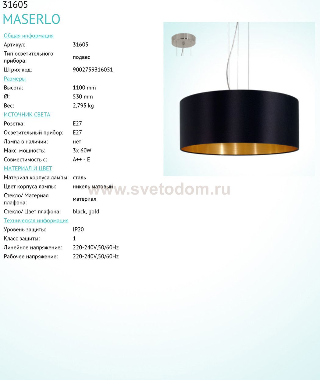 Стильная люстра Eglo 31605 станет украшением любого дома. Эта модель от известного производителя не оставит равнодушным ценителей красивых и оригинальных предметов интерьера. Люстра Eglo 31605 обеспечит равномерное распределение света по всей комнате. При выборе обратите внимание на характеристики, позволяющие приобрести наиболее подходящую модель.