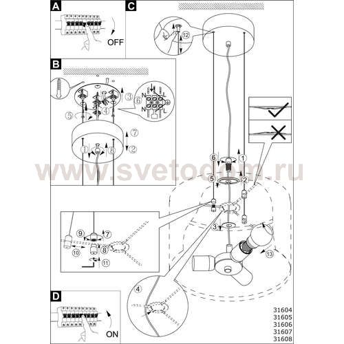 Как правило, в люстрах используются выключатели скрытой проводки, который располагается на стене. Для настенных бра - скрытая проводка, на корпусе или веревочка. Для настольных ламп и торшеров - на шнуре или на корпусе.
