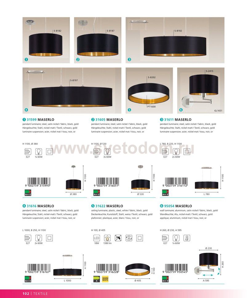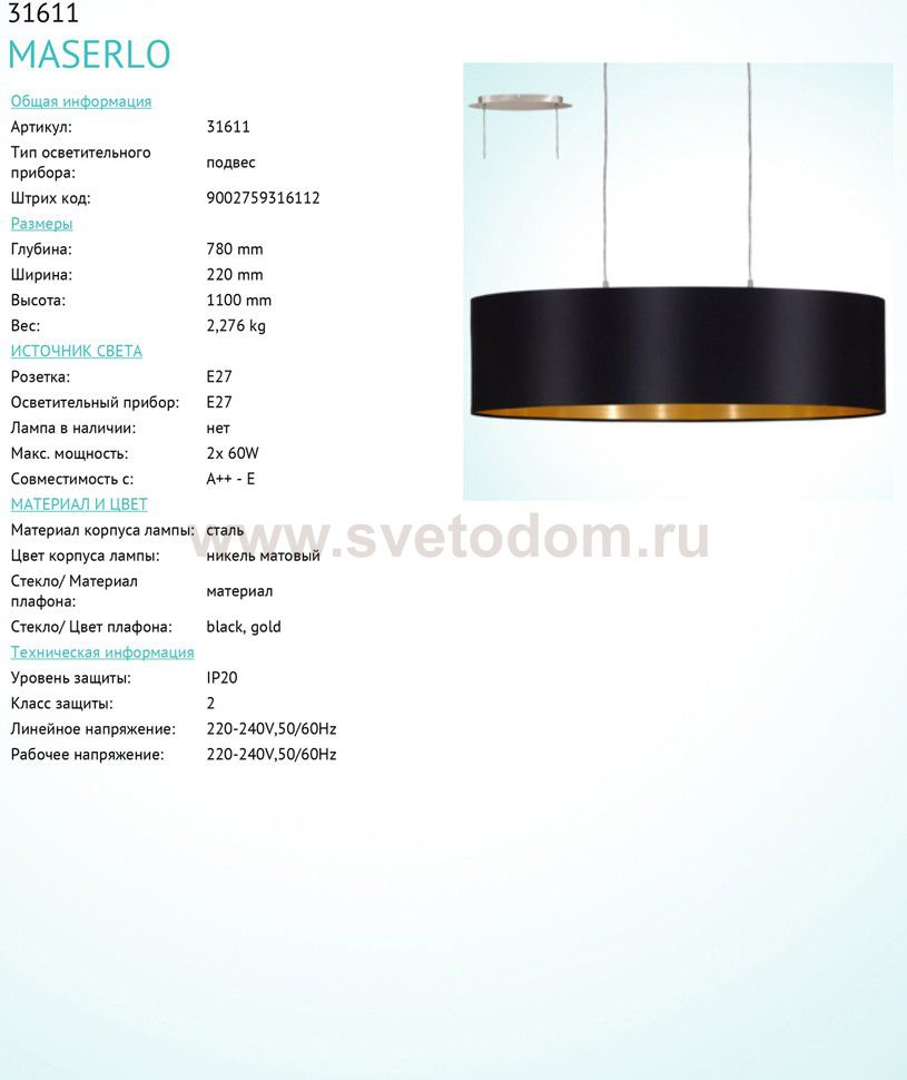 Подвесной потолочный светильник (люстра) MASERLO Комментарий