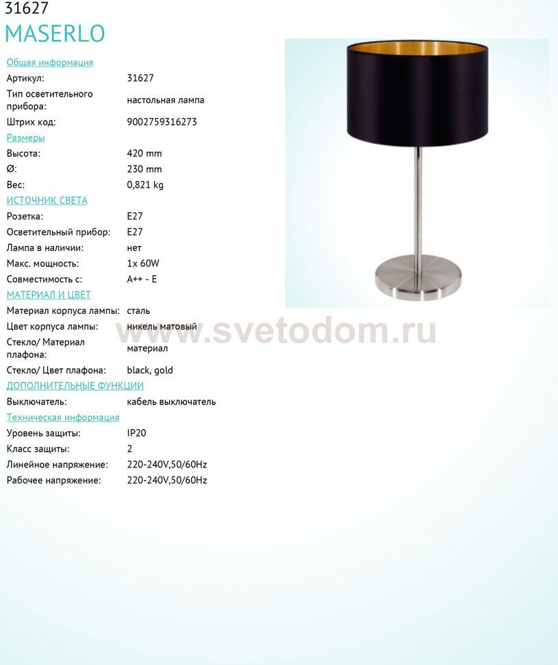 Настольная лампа MASERLO Комментарий