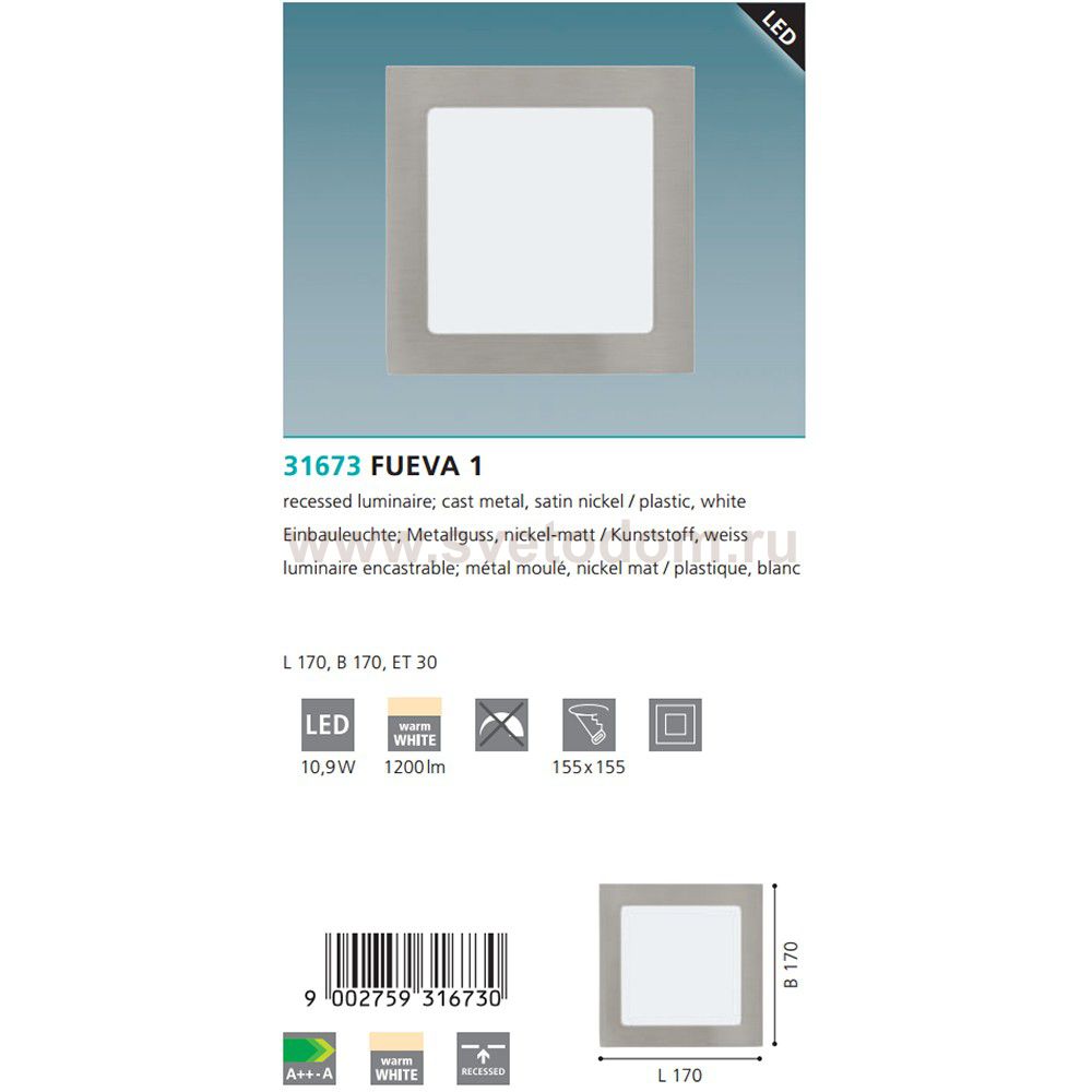 Встраиваемые светильники – популярное осветительное оборудование, которое можно использовать в качестве основного источника или в дополнение к люстре. Они позволяют создать нужную атмосферу атмосферу и привнести в интерьер уют и комфорт. Интернет-магазин «Светодом» предлагает стильный встраиваемый светильник Eglo 31673. Данная модель достаточно универсальна, поэтому подойдет практически под любой интерьер. Перед покупкой не забудьте ознакомиться с техническими параметрами, чтобы узнать тип цоколя, площадь освещения и другие важные характеристики. Приобрести встраиваемый светильник Eglo 31673 в нашем онлайн-магазине Вы можете либо с помощью «Корзины», либо по контактным номерам. Мы развозим заказы по Москве, Екатеринбургу и остальным российским городам.