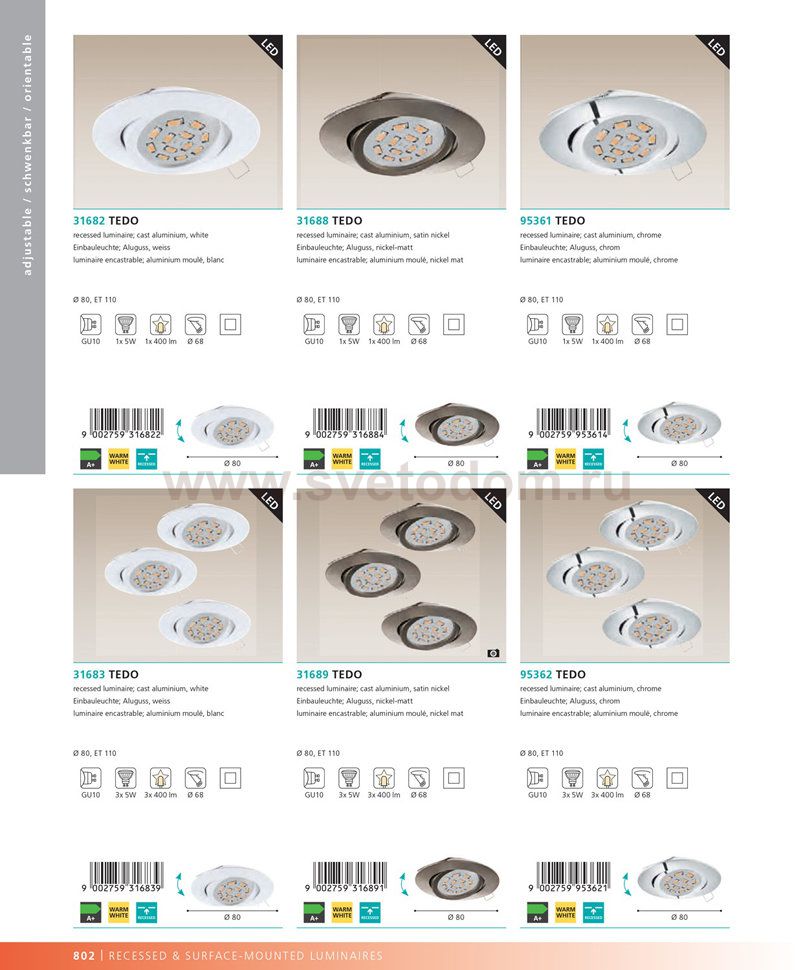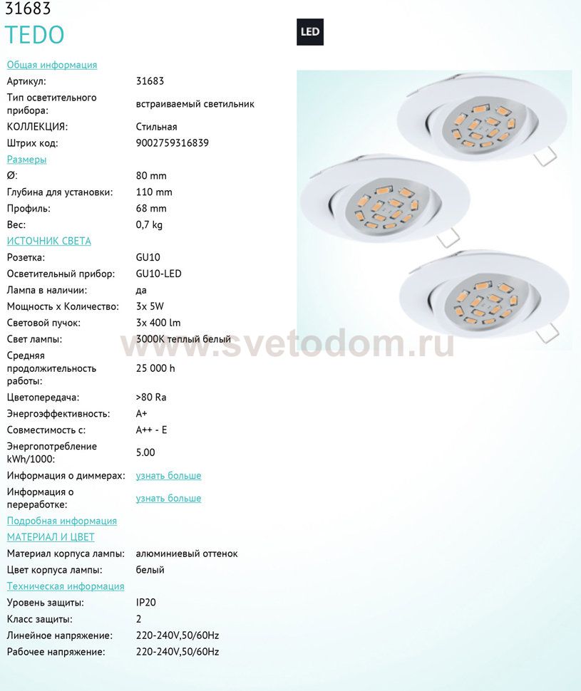 Комплект Светодиодная встраив. светильников TEDO Комментарий