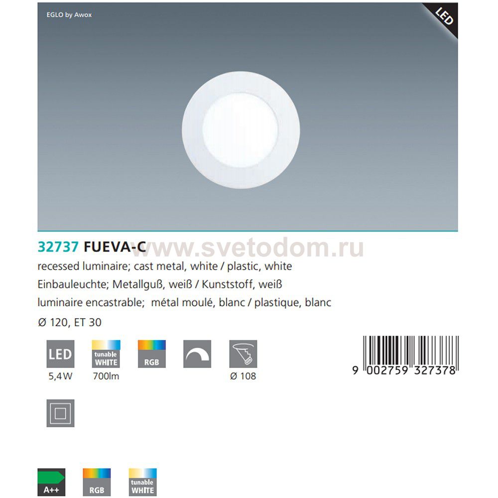 Светодиодная встраиваемая панель FUEVA-C умный свет EGLO connect Комментарий