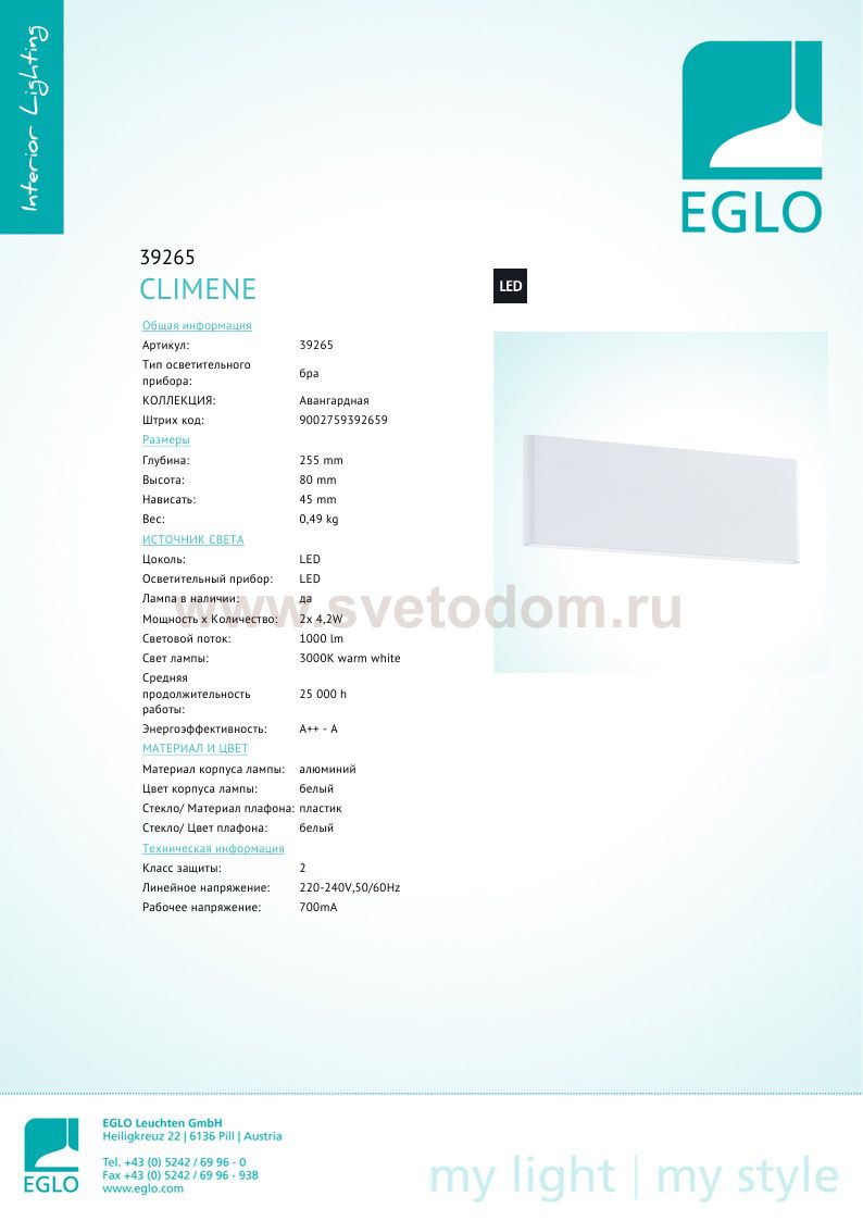 Бра (настенный светильник) светодиодное CLIMENE Комментарий