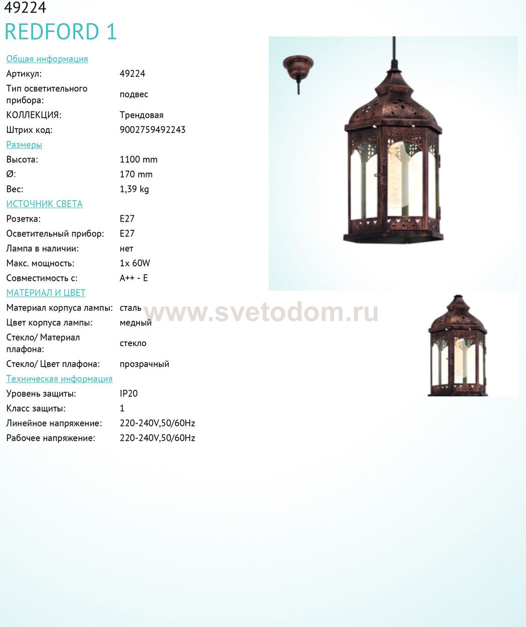 GL3234 Отзывы Подвесной светильник Eglo 49224 REDFORD 1Пока нет отзывов об этом товаре, напишите и он обязательно появится после модерации! Оставить свой отзывПохожие товары Другие товары магазина Фото
