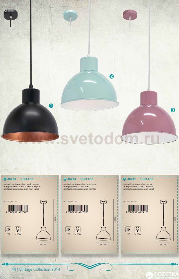 Светильник подвесной Eglo 49239 Vintage отличается регулировкой по высоте и сделает Ваш интерьер современным, стильным и запоминающимся! Наиболее функционально и эстетически привлекательно модель будет смотреться в гостиной, зале, холле или другой комнате. А в комплекте с люстрой, бра или торшером из этой же коллекции сделает ремонт по-дизайнерски профессиональным и законченным.