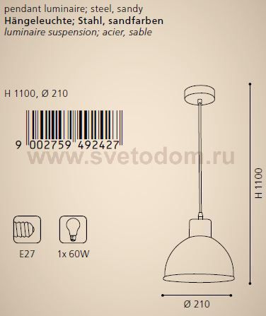 Подвесной светильник Eglo 49242 VINTAGE отличается регулировкой по высоте и сделает Ваш интерьер современным, стильным и запоминающимся! Наиболее функционально и эстетически привлекательно модель будет смотреться в гостиной, зале, холле или другой комнате. А в комплекте с люстрой, бра или торшером из этой же коллекции сделает ремонт по-дизайнерски профессиональным и законченным.