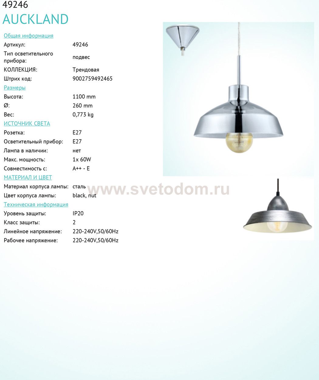 Компания «Светодом» предлагает широкий ассортимент люстр от известных производителей. Представленные в нашем каталоге товары выполнены из современных материалов и обладают отличным качеством. Благодаря широкому ассортименту Вы сможете найти у нас люстру под любой интерьер. Мы предлагаем как классические варианты, так и современные модели, отличающиеся лаконичностью и простотой форм. Стильная люстра Eglo 49246 станет украшением любого дома. Эта модель от известного производителя не оставит равнодушным ценителей красивых и оригинальных предметов интерьера. Люстра Eglo 49246 обеспечит равномерное распределение света по всей комнате. При выборе обратите внимание на характеристики, позволяющие приобрести наиболее подходящую модель. Купить понравившуюся люстру по доступной цене Вы можете в интернет-магазине «Светодом».