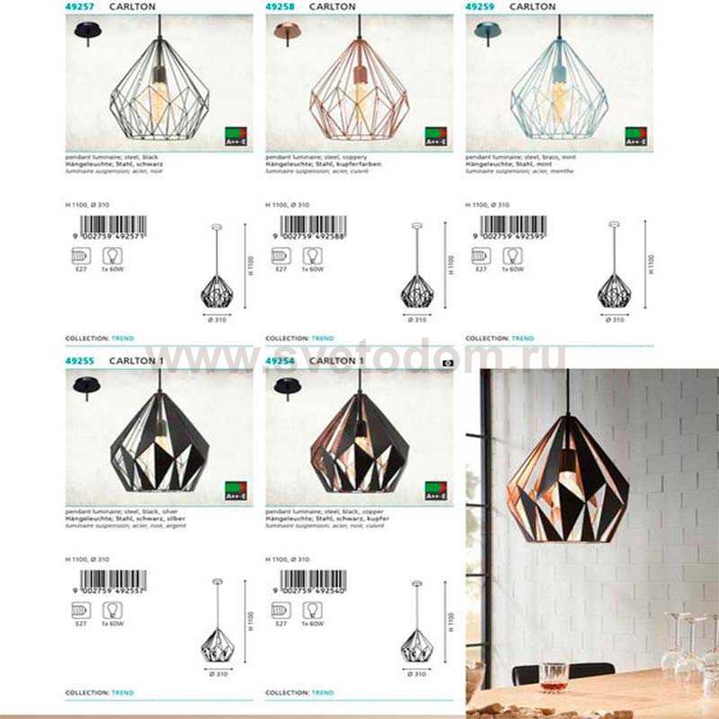 Светильник подвесной Eglo 49256 Vintage отличается регулировкой по высоте и сделает Ваш интерьер современным, стильным и запоминающимся! Наиболее функционально и эстетически привлекательно модель будет смотреться в гостиной, зале, холле или другой комнате. А в комплекте с люстрой, бра или торшером из этой же коллекции сделает ремонт по-дизайнерски профессиональным и законченным.
