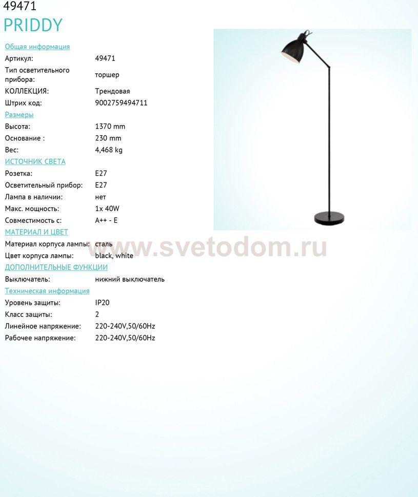 Купить торшер 49471 Eglo по выгодной стоимости Вы можете с помощью нашего сайта. У нас склады в Москве, Екатеринбурге, Санкт-Петербурге, Новосибирске и другим городам России.