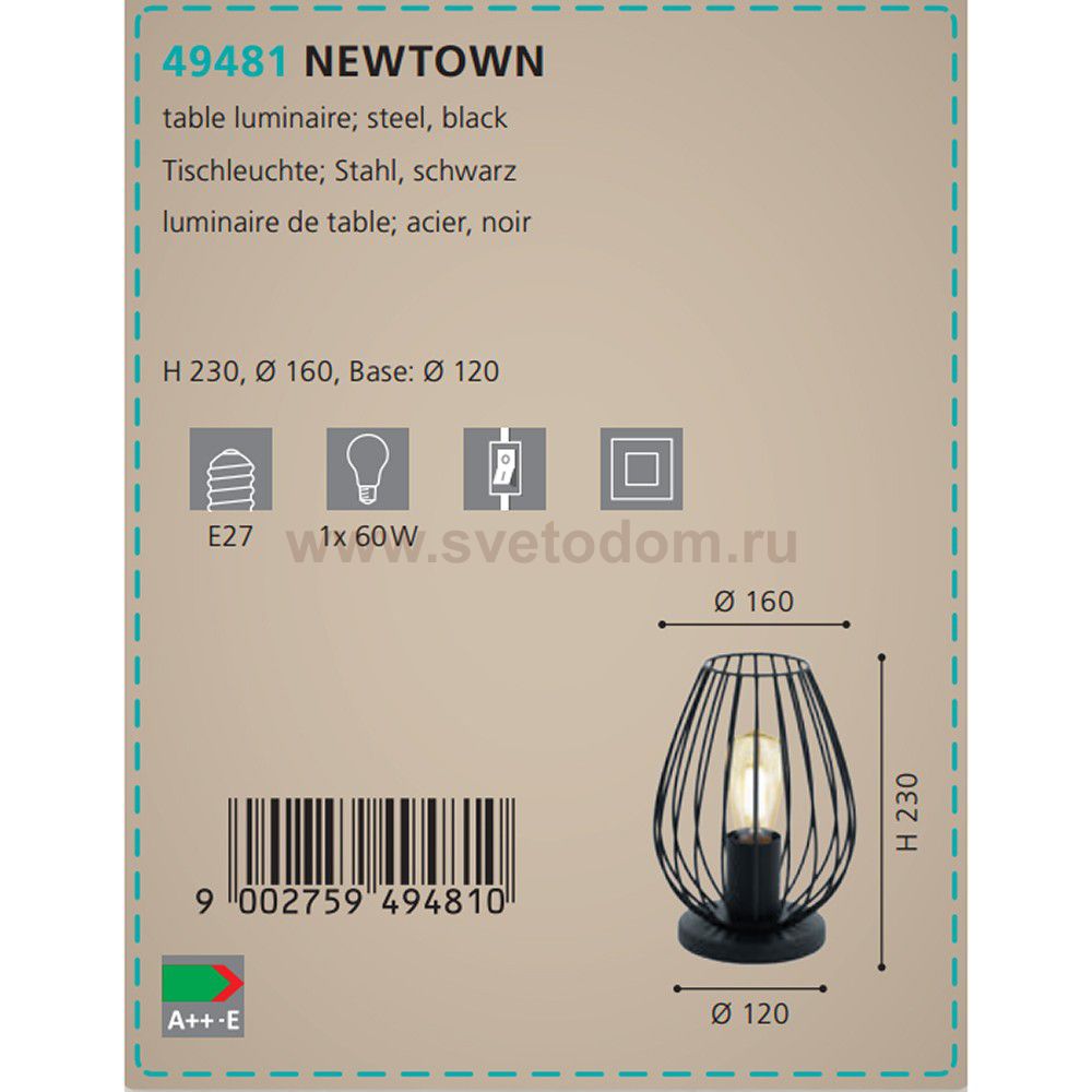 Настольная лампа NEWTOWN Комментарий