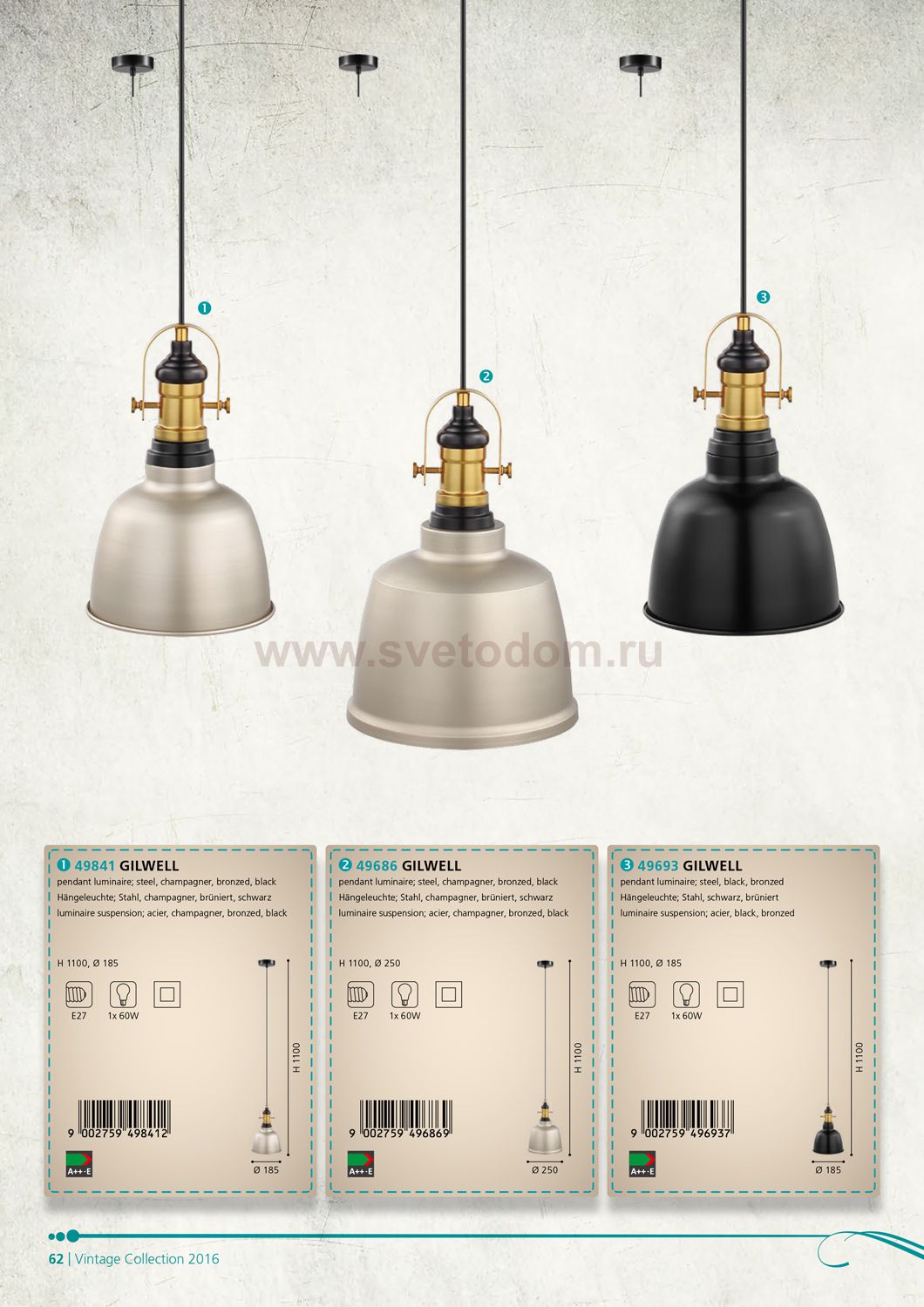 Подвесной светильник Eglo 49686 GILWELL отличается регулировкой по высоте и сделает Ваш интерьер современным, стильным и запоминающимся! Наиболее функционально и эстетически привлекательно модель будет смотреться в гостиной, зале, холле или другой комнате. А в комплекте с люстрой, бра или торшером из этой же коллекции сделает ремонт по-дизайнерски профессиональным и законченным.