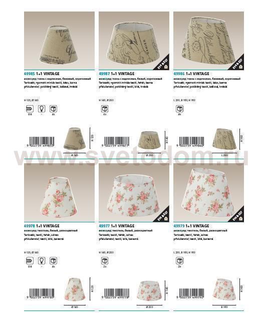 Абажур 1+1VINTAGE, Е14;Е27; ?250, H140, текстиль, белый, цветной применяется преимущественно в домашнем освещении с использованием стандартных выключателей и переключателей для сетей 220V.
