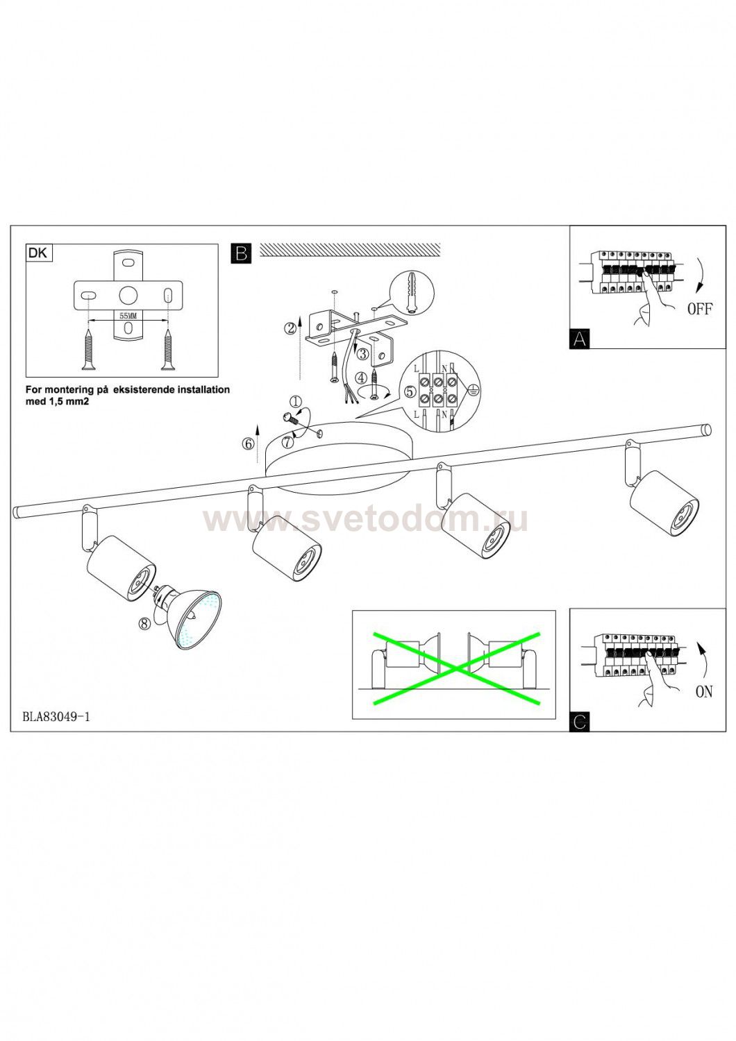 Рекомендуемая мощность 1 лампы: W