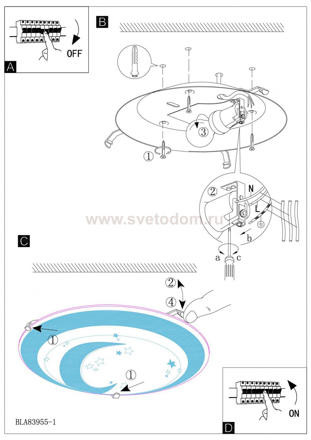Австрийское качество модели светильника Eglo 83955 не оставит равнодушным каждого купившего! Матовое закаленное стекло(пр-во Чехия) с дизайнерским изображением луны, металический корпус белого цвета, Класс изоляции 1, IP 20. ,D=315,1X60W,E27.