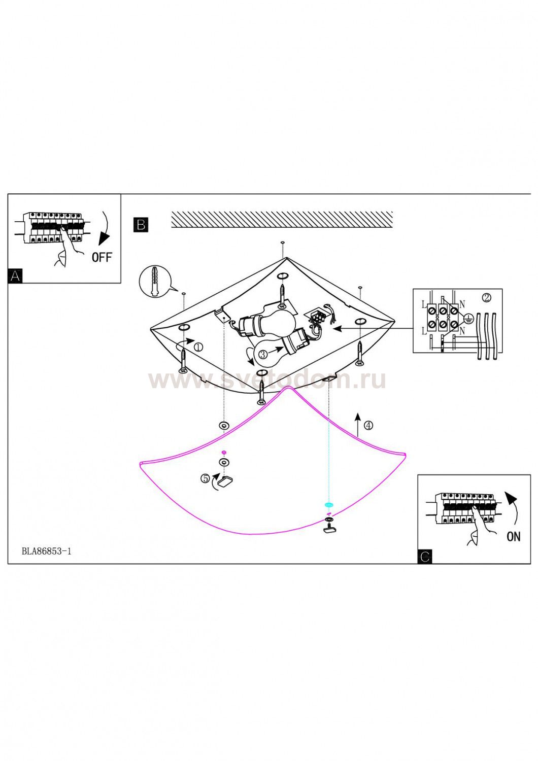 Настенно потолочный светильник Eglo (Эгло) 86853 подходит как для установки в вертикальном положении - на стены, так и для установки в горизонтальном - на потолок. Для установки настенно потолочных светильников на натяжной потолок необходимо использовать светодиодные лампы LED, которые экономнее ламп Ильича (накаливания) в 10 раз, выделяют мало тепла и не дадут расплавиться Вашему потолку.